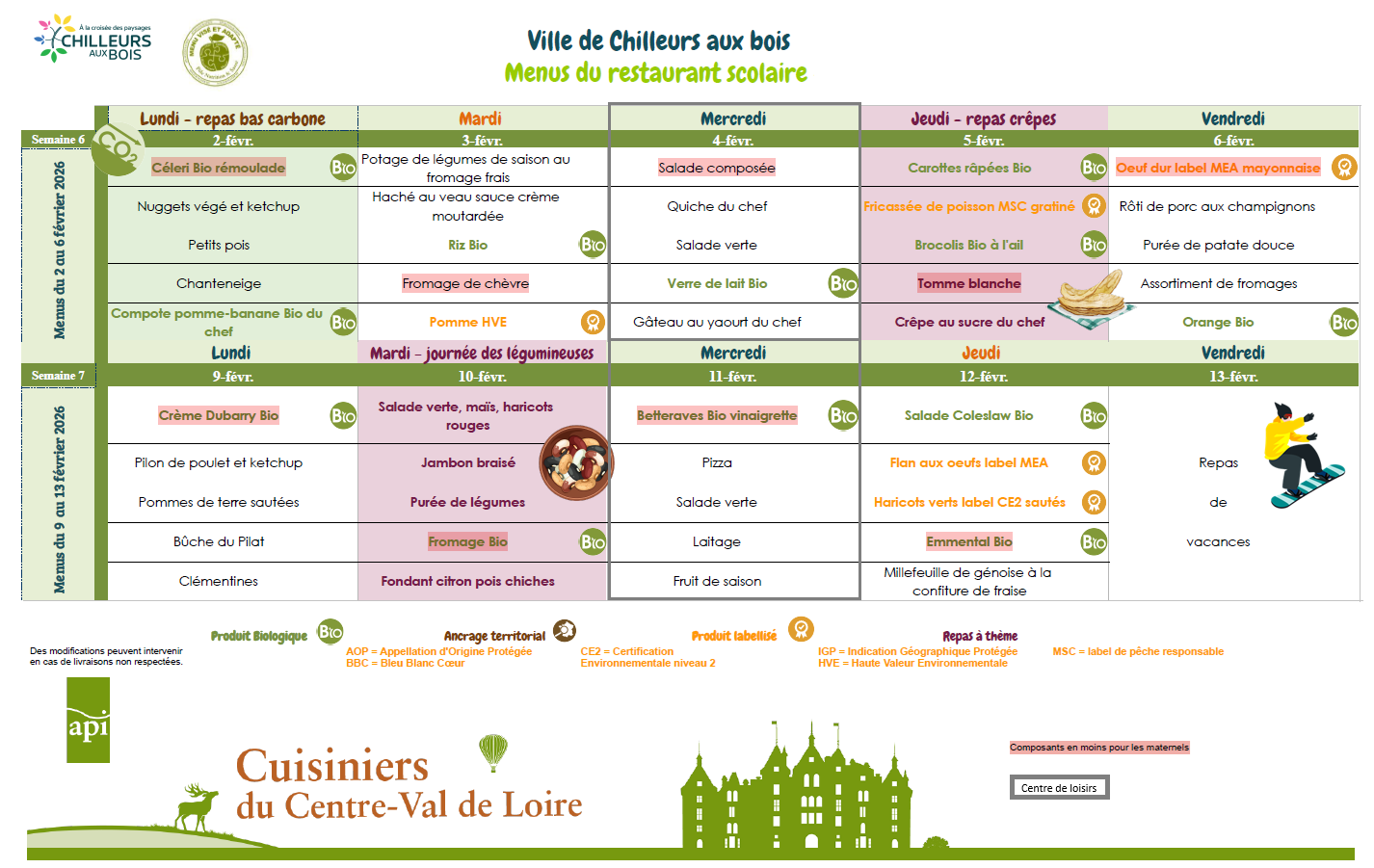 La “commission menus” composée du responsable du restaurant scolaire -, d’élus et de Parents d’élèves, se réunit régulièrement pour préparer les menus.